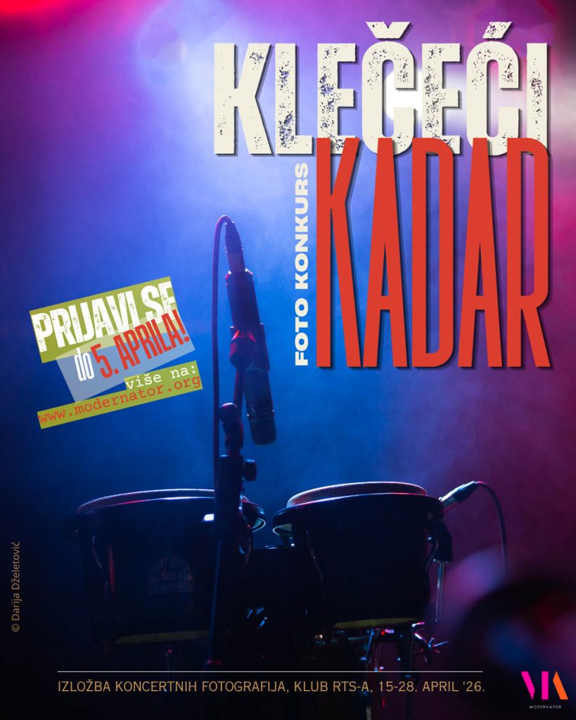 U toku jefoto konkurs za učešće na grupnoj izložbi koncertnih fotografija „Klečeći kadar“, koja će biti održana u galerijskom prostoru RTS Kluba, u zgradi Radio Beograda, od 15. do 28. aprila 2026. godine.