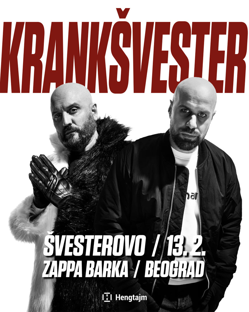Eksplicitno. Eksplicitnije. Krankšvester. Premijerno Švesterovo u Beogradu — praznik istinske ljubavi. Ovaj maksimalno nezgodni dvojac 13. februara stiže u Zappa Barku da napravi još jedan koncert o kome će se sigurno pričati s ekipom, ali verovatno ne i s bakom i dekom. Čisto da se ne pitaju gde su pogrešili i slično. Early bird ulaznice po ceni od 1500 dinara dostupne su putem Gigstixa. Pretprodajna cena iznosi 1800 dinara, dok će na dan koncerta, ako ih ostane, koštati 2200 dinara. Fizičke ulaznice uskoro će biti dostupne i u Katakombe baru (Knez Miletina 45, Dorćol), kao i u Zappa Baru (Kralja Petra 41). Link za prodaju ulaznica: https://shorturl.at/QlZMy