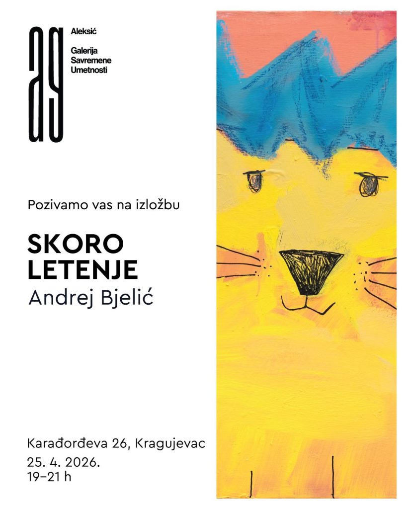 Umetnik Andrej Bjelić predstavlja najnoviju seriju slika pod nazivom „Skoro letenje“ u Aleksić galeriji savremene umetnosti. Otvaranje je zakazano za subotu, 25. aprila u 19 časova, a publika će imati priliku da vidi 15 radova iz njegove najnovije produkcije, koji nose prepoznatljiv Bjelićev vizuelni izraz — figure svedene na znak, na granici između prisustva i tišine, snage i ranjivosti.